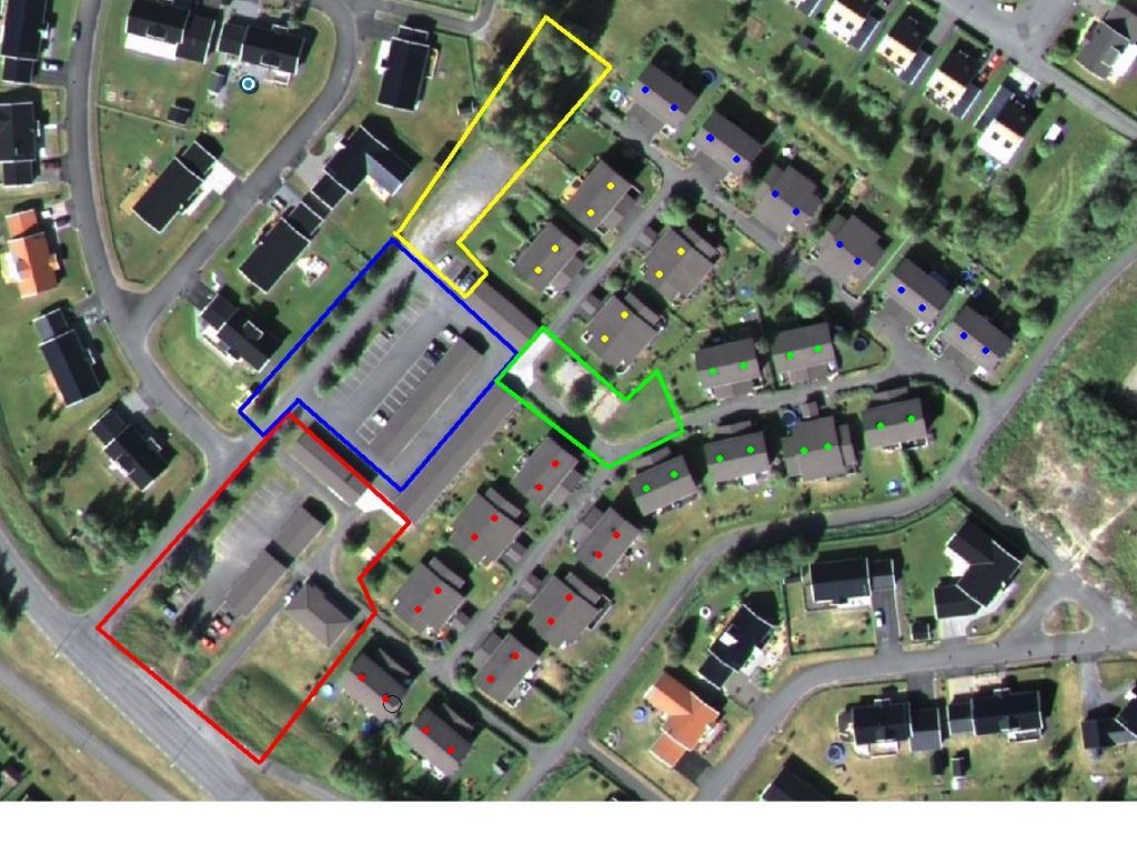 - Mellan carportar vid släpvagnsparkeringen: Jämna till gräset eller ta bort det helt.